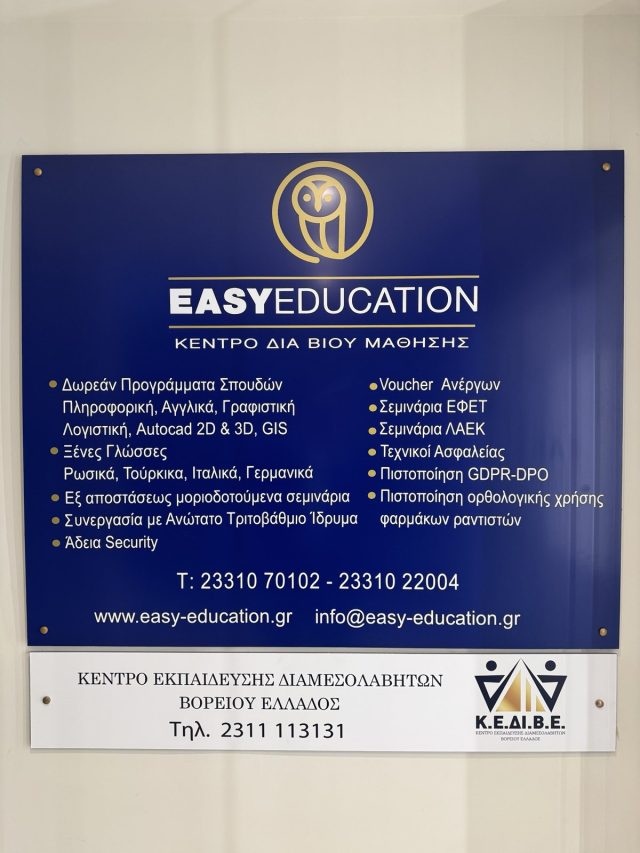 - Επιλέγετε Αδειοδοτημένο Φορέα με συνεργασίες Πανεπιστημιακού Επιπέδου (Πανεπιστήμιο Δυτικής Μακεδονίας) και την εγγύηση του Ομίλου Easy Education.